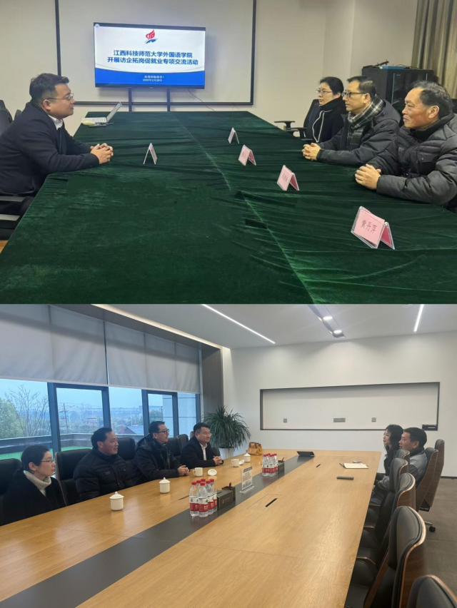 为全力推动高质量就业,联动宝贵校友资源,拓展就业育人工作的广度与深度,2025年2月20日至21日,外国语学院党委书记赖以柱、党委副书记郑建峰、办公室主任吴昊、就业专干黄丹萍一行前往鹰潭高新区开展走访校友、访企拓岗专项交流活动。