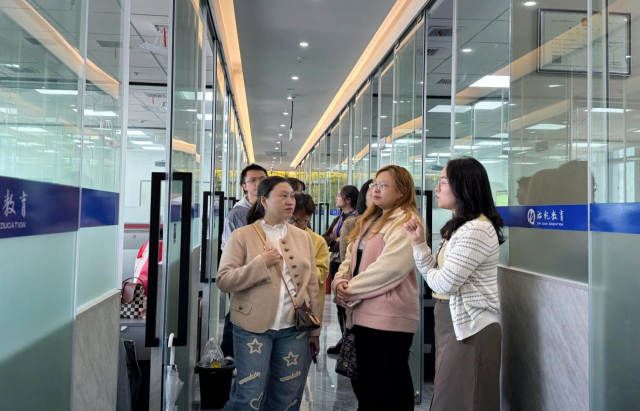 院就业专干黄丹萍、毕业班辅导员杨丽江、李利、苏昭走访调研治乾教育培训学校。实地参观了该企业的工作环境,切身感受到企业工作氛围。随后,双方就企业整体情况、当前外语专业人才的市场需求、以及如何更好地为学生提供实习机会等进行了座谈会。