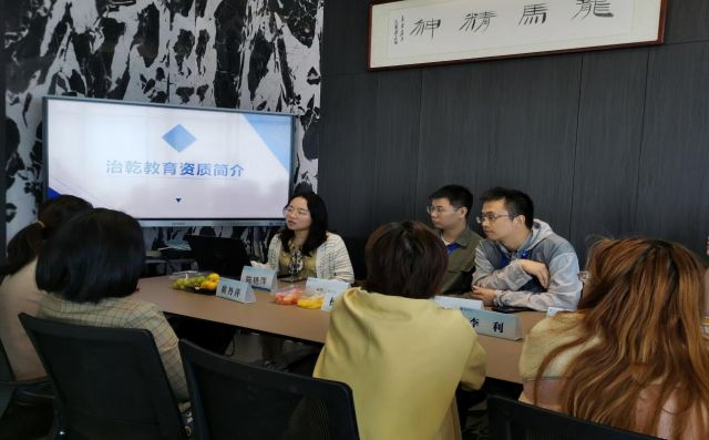 在座谈会中,治乾教育培训学校人事负责人陈艳萍介绍了企业自身发展状况、师资队伍及业务范围等相关内容,表明了对人才的多样化需求。随后,双方围绕该校招聘需求、发展模式、人才晋升途径进行了深入了解。此外,双方还提及了校企合作和学生未来发展、实习就业等相关问题,希望校企间能加强合作,互利共赢。