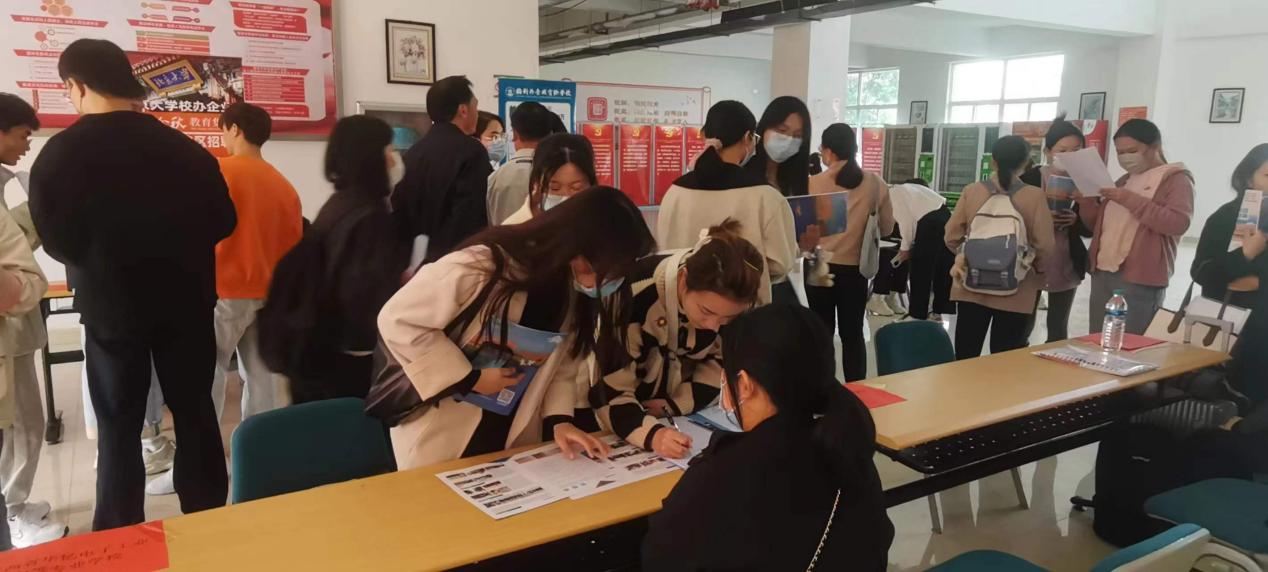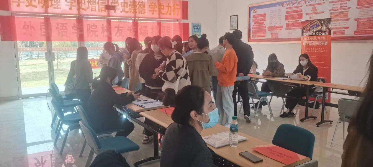 本次校友招聘会邀请了八戒科技服务公司、国科共青城实验学校等6家校友企业。招聘会现场,各企业讲解了毕业生们所关心的实习期待遇、考核指标以及入职后的职业前景,定位和方向等问题。正值学校建校70周年,校友怀着对母校的感恩之情,为学弟学妹们在就业方面倾囊相授。