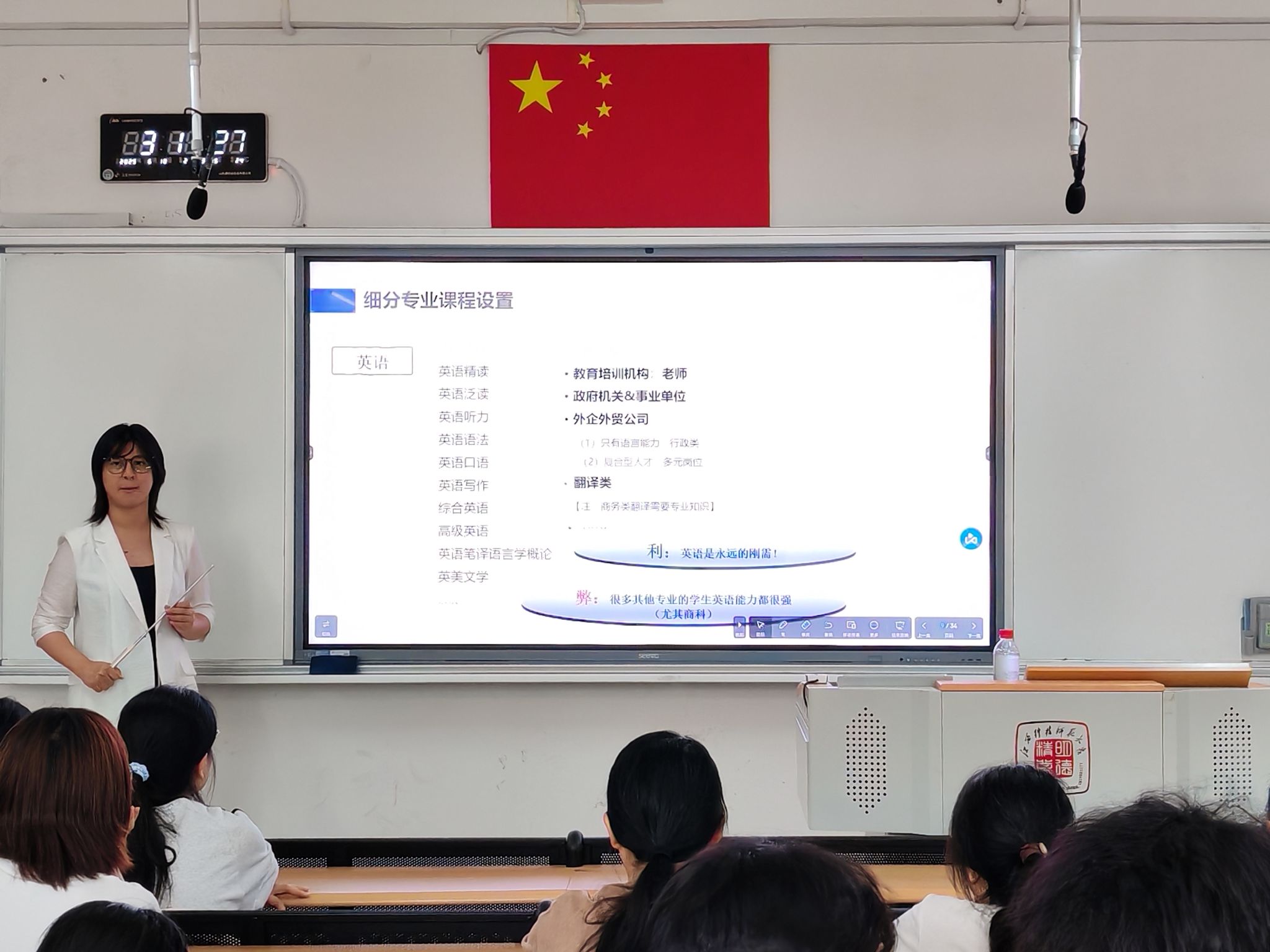 讲座聚焦外语专业学生职业发展痛点,深入探讨如何突破语言能力瓶颈。赵雅分析道:“语言只是一个工具。在全球化背景下,商科等专业学生英语能力普遍提升,外语专业学生单纯依靠语言技能的竞争优势正逐渐弱化。”
