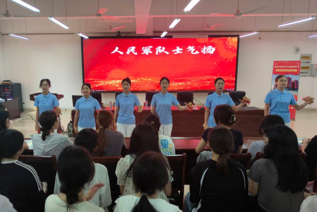 会前,播放了学院办学成就宣传视频,学院红五星快板队表演了节目《建军精神放光芒》,现场气氛热烈。