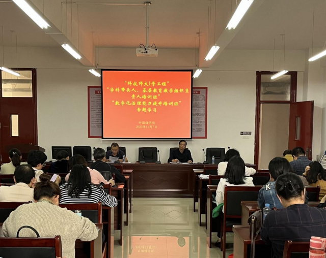 当天下午,学院召开全体教职工会议,传达学校“科技师大1号工程”“学科带头人、基层教育教学组织负责人培训班”“数字化治理能力提升培训班”工作精神,部署学院“数字化赋能本科、研究生教育教学高质量体系建设与改革——学科带头人培训班”工作,进一步统一思想,凝聚共识,为办好培训班打下良好基础。