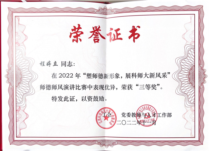 近日,校党委教师与人才工作部公布了“塑师德新形象•展科师大新风采”演讲比赛、师德典型案例评选和征文比赛活动获奖名单,williamhill威廉希尔中国在活动中荣获佳绩。