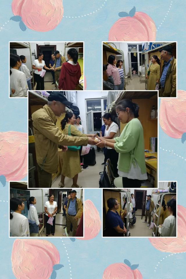 晚上六点,学院领导与老师开始下寝走访。首先,在此中秋国庆之际,老师们向新生送上了节日祝福与月饼,为留校新生心中增添了一份暖意。廖书记强调,青年一代有理想、有担当,国家就有前途,民族就有希望,希望各位同学能够不负使命,砥砺前行,在大学继续书写人生的辉煌。黄院长指出,广大新生的加入为我们学院注入了新鲜的血液,希望广大新生继续传承“立学问世、通外博中”的院训,增强专业素质,在新时代为国奋斗中实现人生理想。在老师和学生们亲切的交谈中,新生们对于未来的学习生活有了更加清楚的认识,也使学院领导们更加清楚地了解学生的所思所想和对大学生活的期待。除此之外,学院领导叮嘱大家一定要注意网上贷款等诈骗陷阱,特别注意人身安全和寝室用电情况,做到人走断电,共同营造一个健康安全的寝室环境。慰问走访现场气氛温馨,新生们纷纷对领导的慰问表示感谢,并承诺会切实注意各项用电安全以及网络诈骗,脚踏实地提升自我,走好人生路上每一个脚印。