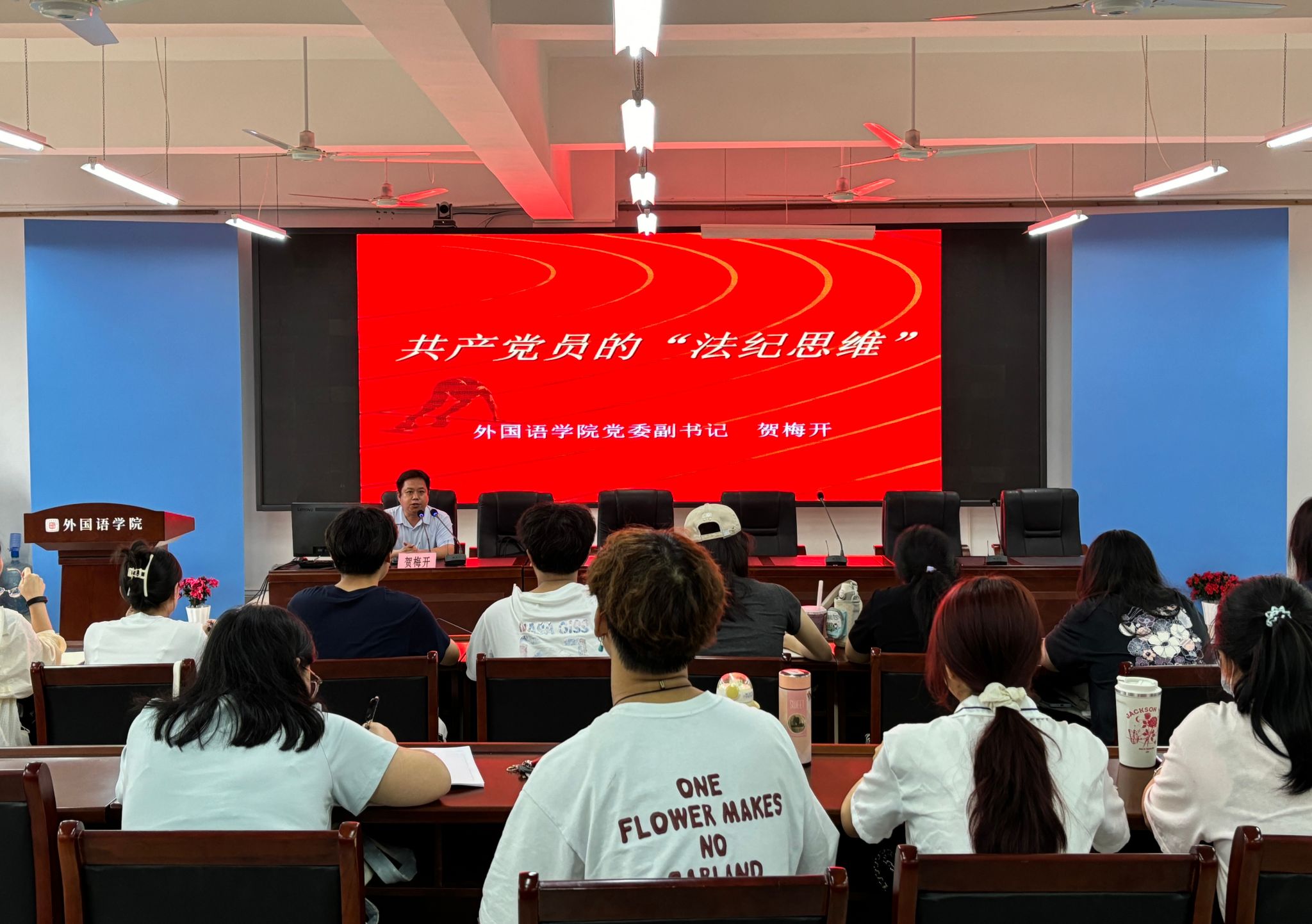 贺梅开结合《中国共产党纪律处分条例》讲授《共产党员的“法纪思维”》。他以真实案例分析违犯党纪的深层危害,引导学员坚定理想信念、牢记初心使命。在讲解过程中,他着重强调要增强党规党纪意识,树立红线底线思维,始终把纪律挺在前面,严格遵守政治纪律、组织纪律、廉洁纪律、群众纪律、工作纪律、生活纪律这六大纪律。同时,他还结合实际,引导学员树立正确的世界观、人生观、价值观,扣好“人生第一粒扣子”,将党纪学习教育融入日常,时刻规范言行、严于律己,真正做到学纪知纪明纪守纪。