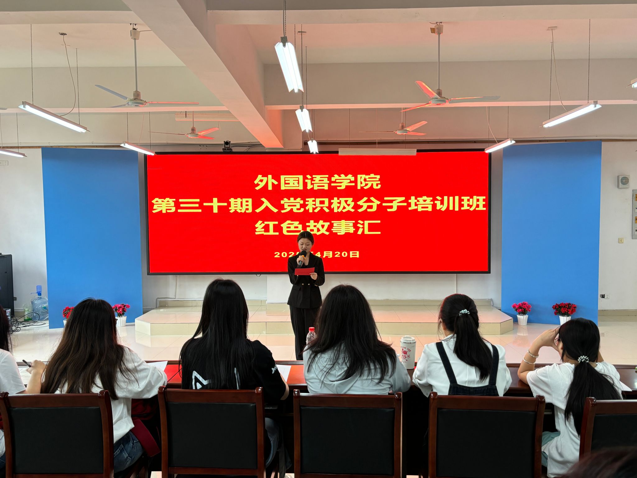 培训结合“世界读书日”,将“阅读红色经典,讲述红色故事”融入培训,开展“红色故事汇”活动。10名学生党员聚焦中国共产党建军精神,讲述了“第一面军旗的诞生”、“半截皮带的故事”等红色故事。生动的讲述、真挚的情感,引发培训班学员强烈共鸣,使大家在重温峥嵘岁月中感悟人民军队优良传统和光辉历程,领会中国共产党建军精神的深刻内涵,进一步坚定理想信念,厚植爱国情怀。