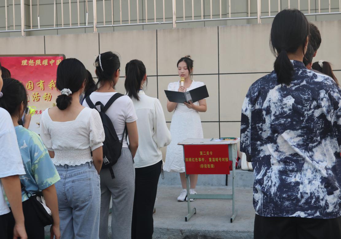 活动伊始,主持人带领全体成员齐唱团歌、重温入团誓词。伴随着一声声坚定有力的宣誓,大家在这庄重神圣的氛围中接受了一次思想的洗礼,更深切感受到,作为一名共青团员,身上肩负着的责任与使命。随后展开素拓环节,同学们在轻松的游戏中感受身为中华儿女的骄傲和自豪,素拓以“爱的抱抱”作为暖身活动,通过速记图纸、你说我猜、单词搭配、共制党旗等游戏形式开展。活动最后,大家纷纷表示要认真学习,当好红色基因的传承者、实践者、弘扬者,肩负起历史使命,努力成为堪当民族复兴重任的时代新人。