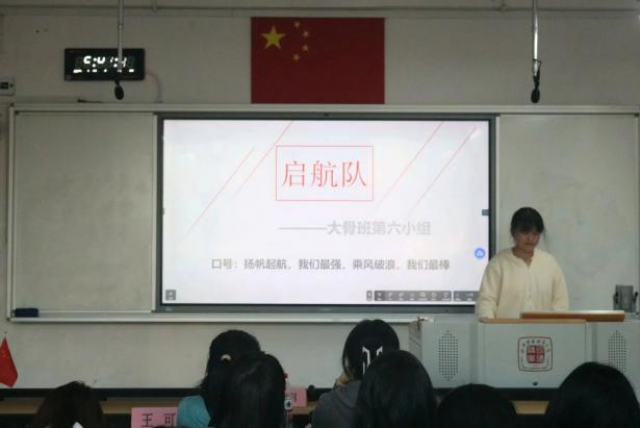 紧接着,各小组成员依次上台进行自我介绍和小组口号介绍,并进行民主投票选举班委。