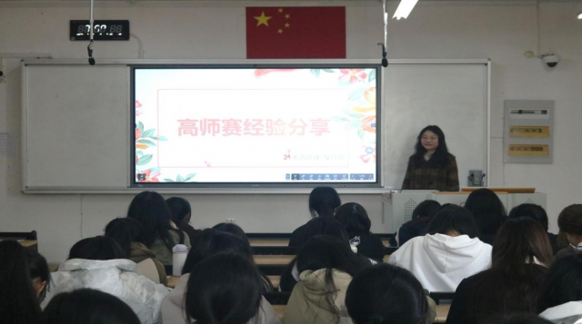 夏自琪结合自身经历分享了高师赛的主要模式及备赛流程。她表示,高师赛主要考察英语语言技能、英语教学技能以及实训等能力。同学们须注重平时积累,在备赛过程中更要搜集大量英语学科知识及教学资料,参加说课理论培训,才能在竞赛中脱颖而出。