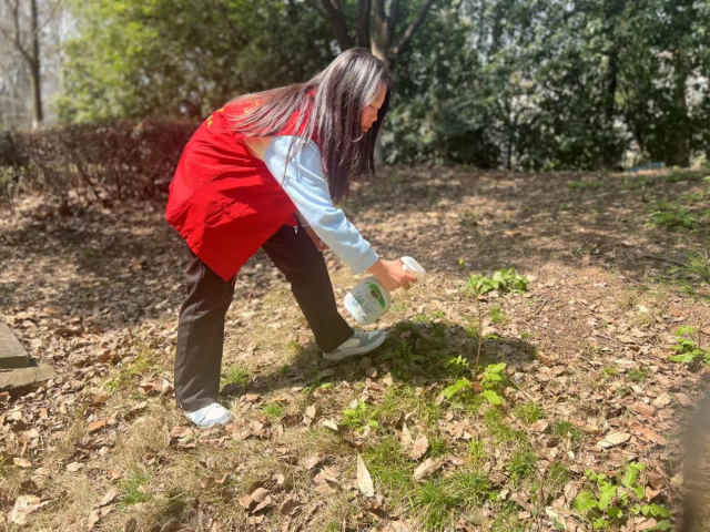 志愿者们在校园各个角落开展护绿行动,他们戴上手套、走进绿化带、捡拾垃圾、清扫落叶、拔除杂草、修剪枝叶、喷洒营养液,以实际行动呵护校园草木,创建美丽校园。