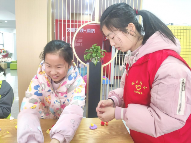寒托班课程多样,除了阅读课,还有手工课、美术课、自习等等。没有任课时,网格员们便是“助教”。龚琼玉表示,如果说给小朋友们上课让她获得了当老师的初体验,那么当助教便是让她在见证孩子们创造力的同时,收获了孩子们纯真的笑脸。