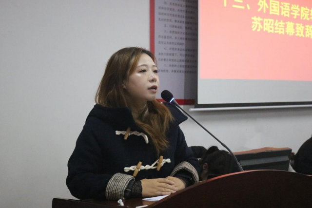随后,暑期“三下乡”社会实践活动“优秀个人”代表们先后上台发言,向同学们分享了在活动中的所思所悟所得,表示会踔厉奋发、笃行不怠,为学院的建设发展贡献自己的青春力量,并积极呼吁全体外院学子也要接续奋斗,展现当代大学生的青春实干。