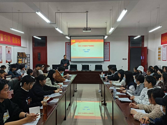 为教育引导入党积极分子深入学习贯彻党的二十大精神,深刻领会党的二十大党章修正案的重大意义和重要内容,11月21日晚,外国语学院党委副书记郑建峰为学院第二十八期党校培训班学员讲授题为“学习《中国共产党章程》”的党课。