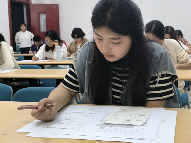 复赛以笔试形式进行,比赛内容紧扣中华文化,通过英汉互译、推理猜谜、组字成词题等创新性题型,全面考察选手的英语综合能力,增加了比赛的趣味性和挑战性。比赛过程中同学们认真思考,沉着应答,最终11名同学晋级决赛。