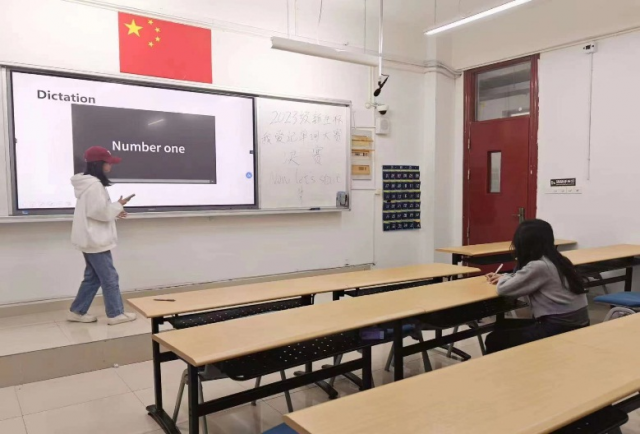 决赛以笔试和面试相结合的形式开展,设置句子听写、看图猜词、论题目说三个环节,综合考察选手的语言运用能力、思辨能力与跨文化沟通能力。比赛过程中每位同学都展现出自己对中华优秀传统文化的独特思考。赛后经评审团商议,俞佳月同学获大赛一等奖,谢萱、胡媛玲两位同学获大赛二等奖,白轩瑞、吴佳、张华曜、胡逸洋四位同学获大赛三等奖。