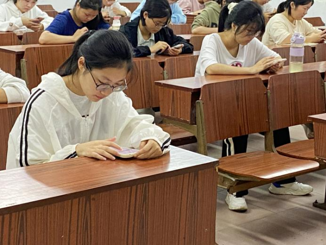 初赛按照参赛选手所属校区,分别设置红角洲校区、枫林校区两个考点,依托“词达人”官方平台,以全校统一在线考试的方式开展。比赛现场气氛良好、秩序井然,最终共有61名同学晋级复赛。