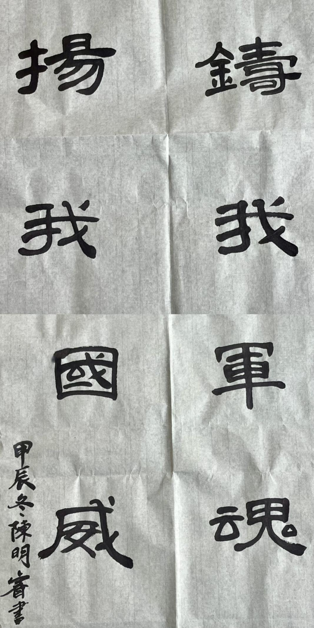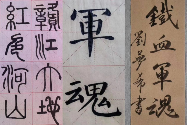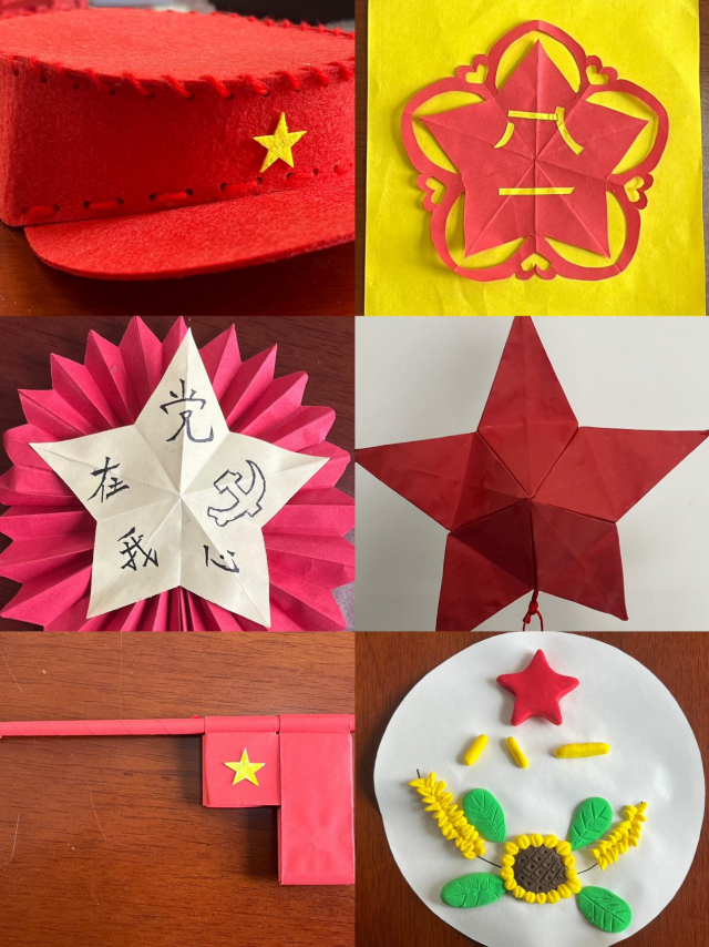 学生党员展示了与建军精神相关的系列设计:聚焦建军精神,创作了“铸我军魂,扬我国威”书法作品;结合八一南昌起义历史事件,设计了“军帽”、“枪支”等系列作品;结合“红五星”党建品牌,设计了红五星剪纸、粘贴画等特色文创。