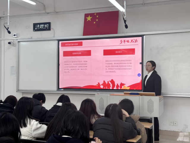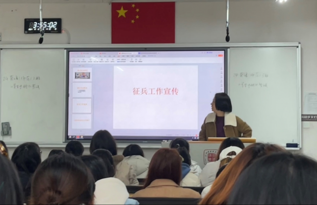 图为辅导员杨丽江召开征兵工作宣传主题班会