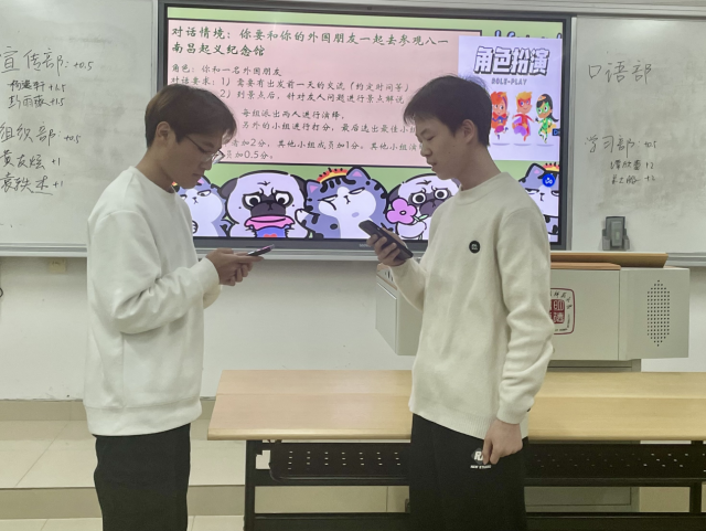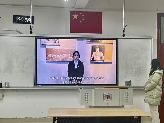 社团成员们观看了红色英文朗读者梁雨欣深情讲述的南昌起义李立三英勇事迹的视频,并围绕南昌八一起义纪念馆开展情境对话,用英语模拟交流,以红色文化赋能英语学习,传承红色基因,赓续红色血脉,让红色文化在外语学习中绽放光彩。
