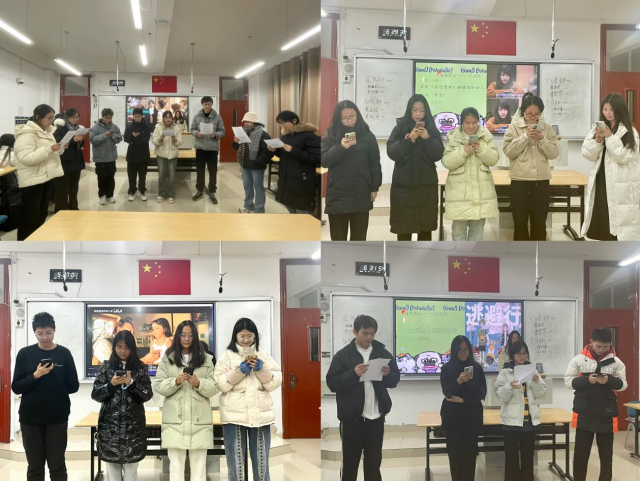 本次口语角活动包括晨晚读成果展示、红色英文朗读者视频观看、红色场馆情景剧模拟环节。各语言小组展示了精彩节目,如英语组的深情演唱、日语组的朗诵与歌曲、法语组的经典歌曲、以及西语组融合中国古典诗词的朗诵,为现场观众带来了一场外语文化盛宴。