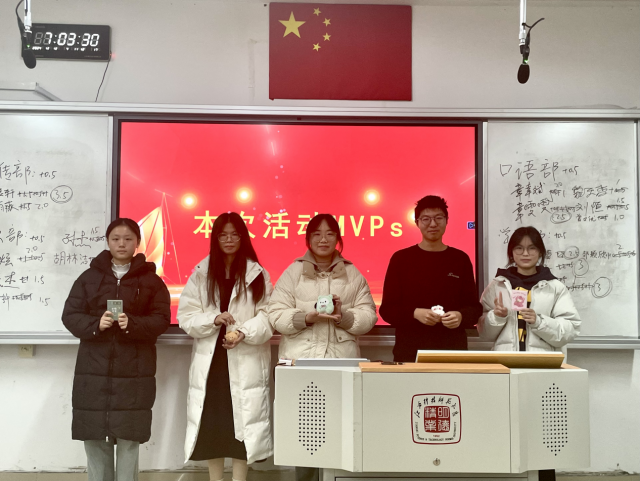 期末总结会中,进行了“你画我猜”和“指守对决”两个游戏环节,检验了本学期社团成员们之间的熟悉程度和团队协作能力,同时将现场气氛推向高潮。最后,社团表彰了本次活动的最佳选手和本学期的优秀干事,对他们的辛勤付出和出色表现给予肯定。
