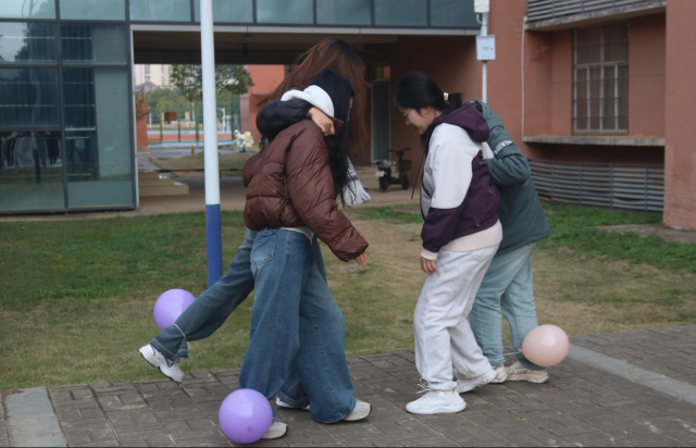 分享结束后,同学们将自己的“压力图纸”塞进气球中,将压力“吹”进气球,大声说出解决方法,确定个人目标并踩爆气球,舒缓压力,克服恐惧,放松身心。