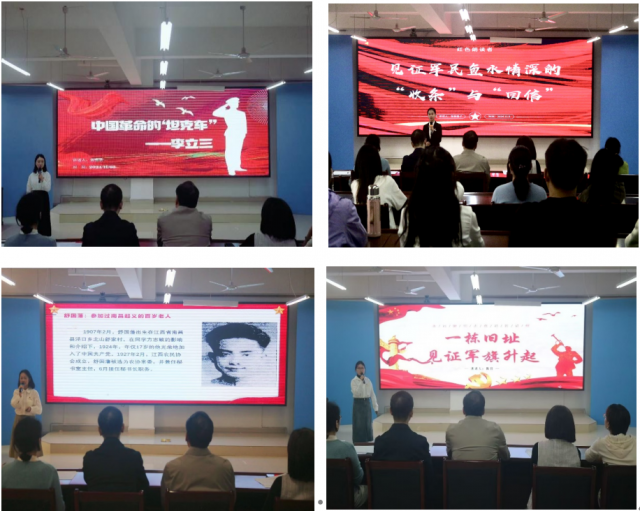 活动中,学生党员依次讲述红色故事。党员们紧紧围绕建军精神,从“一页纸笺见忠诚贺龙”到“革命坦克车李立三”,从“八一南昌起义女兵杨庆兰”到“永不凋谢的井冈兰伍若兰”,从“‘一号烈士’段德昌”到“八一南昌起义英雄陈守礼”,学生党员们声情并茂地讲述党的故事、八一南昌起义的故事、英雄和烈士的故事。