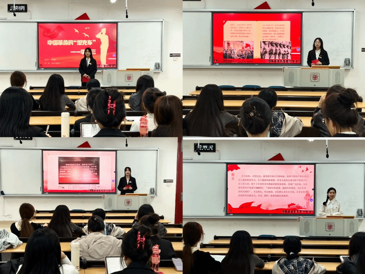 学生党员结合音频配图,讲述红色故事、重温红色经典、传承革命精神。从“中国革命的‘坦克车’”到“一封密函”,从“见证军民鱼水情深的‘收条’与‘回信’”到“永不凋谢的井冈兰——伍若兰”,从“《八一起义歌》之‘红带兵’”到“陈守礼舍生抗顽敌”等等,学生党员们选择经典人物、红色文物、革命故事等不同故事类型,带领大家重温八一南昌起义的历史。