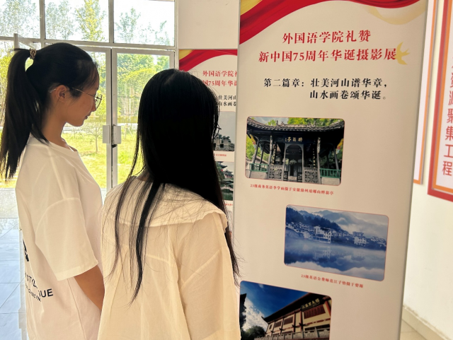 此次摄影展作品分为“红色足迹印初心,七十五载铸辉煌”、“壮美河山谱华章,山水画卷颂华诞”两个篇章。作品展出期间,吸引了众多师生驻足观看、交流探讨,共同感受中华人民共和国成立75周年祖国的历史变化。