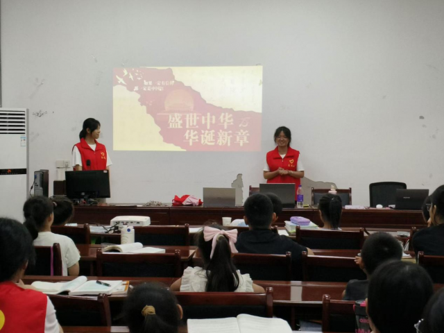 首先,志愿者向孩子们详细地介绍了国徽、国旗及国歌,生动讲解了国庆节的由来、意义并回顾了党的历史,在党的领导下,祖国日益繁荣,人民生活水平迅速提高,人民生活日新月异。本次宣讲结合国家时事,如北京奥运会的成功举办和航天领域取得的重大突破等事例,让孩子们忍不住感叹“厉害了我的国!”。