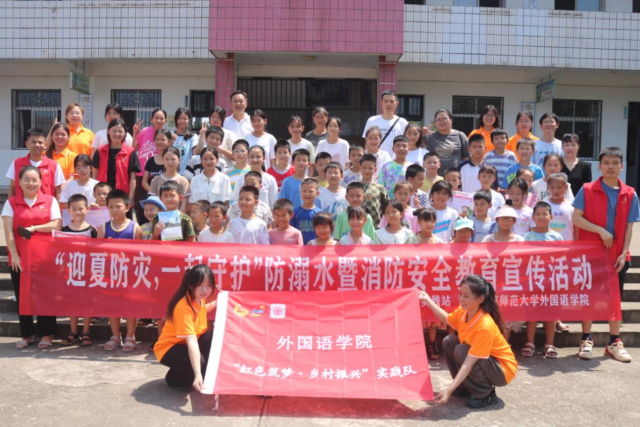 图为张黄茜子在吉安市曾家村开展“珍惜生命水火无情”主题安全教育活动合影