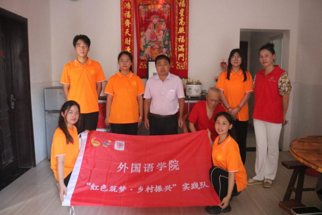 图为张黄茜子在吉安市曾家村开展“青春助老智慧扶贫”主题实践走访活动合影