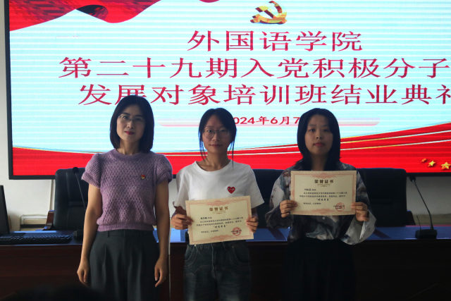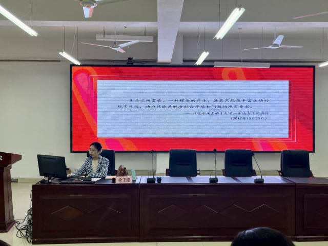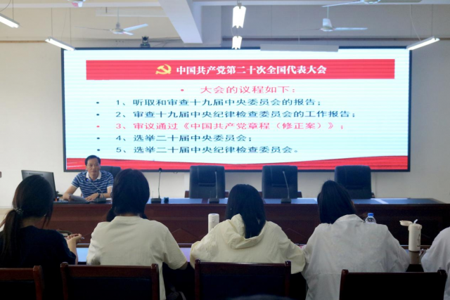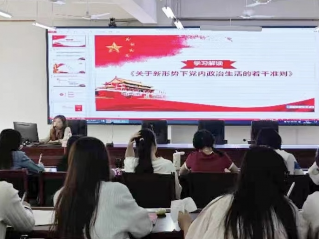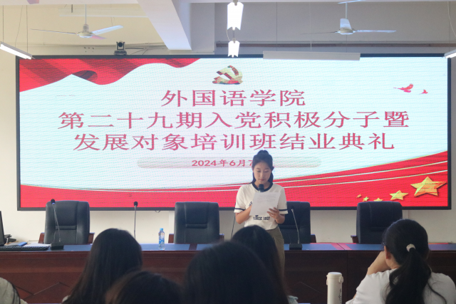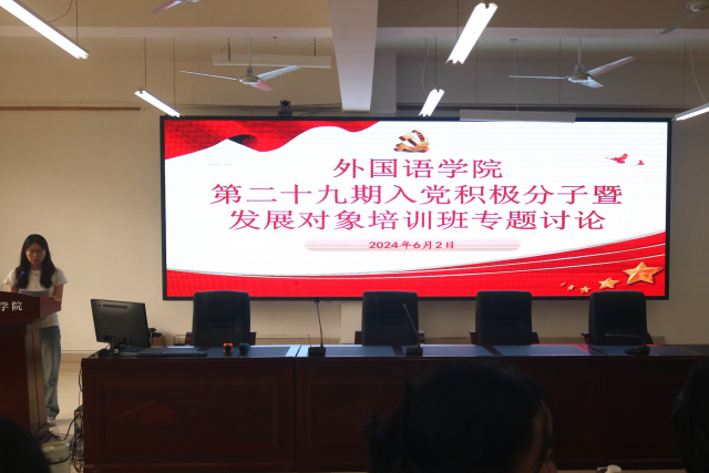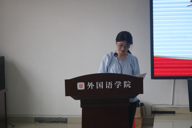 学生支部书记皮卫阳、苏昭、徐玉峰分别讲述《中国共产党发展党员工作细则》《党的基本知识(应知应会)》《关于新形势下党内政治生活的若干准则》《学习贯彻习近平新时代中国特色社会主义思想 发挥外语优势 讲好中国故事 传递中国声音》党课等,教工支部书记王中祥围绕《中国共产党简史》,重点讲述《中国特色社会主义进入新时代》党课。