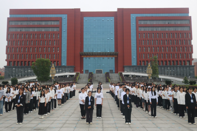 图为 williamhill威廉希尔中国2023级全体学生列队准备观摩升旗