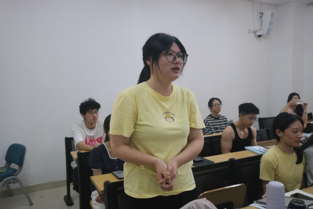 图为22级日语班团员代表进行活动分享