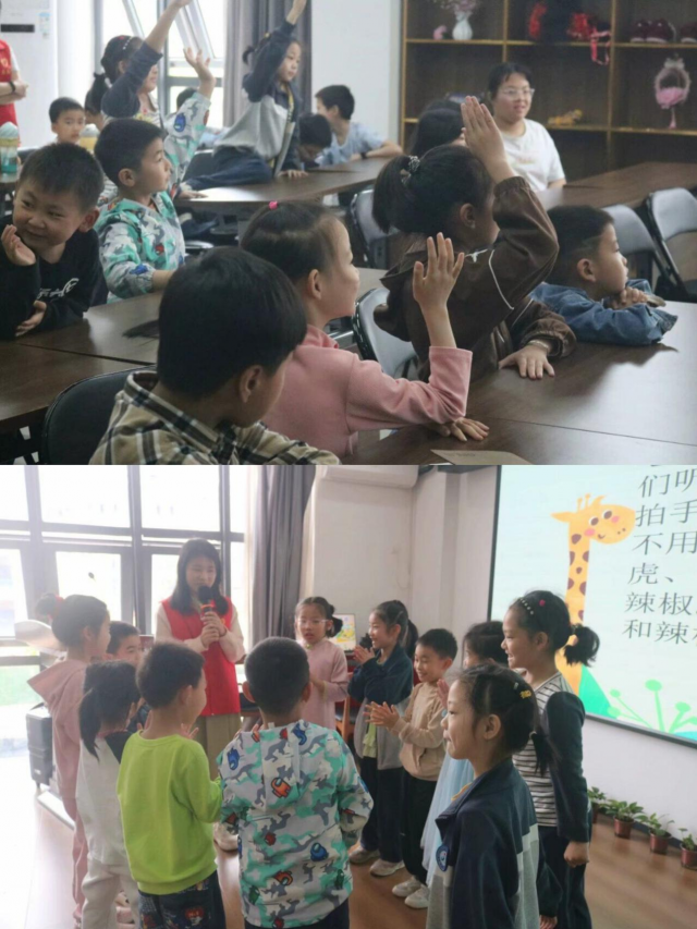 图为英语趣味课上小朋友回答问题