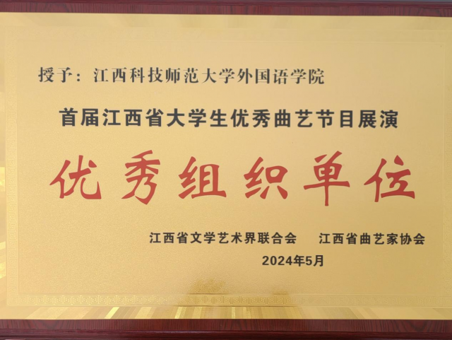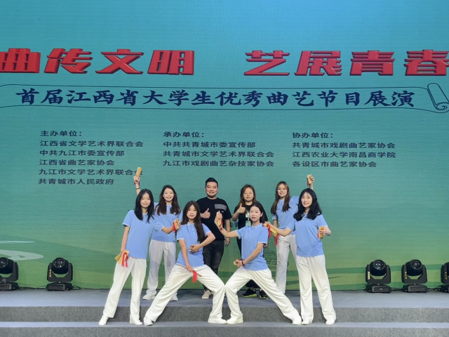 为深入学习贯彻习近平新时代中国特色社会主义思想和党的二十大精神,全面展示我院学子红色快板表演成果,5月19日,williamhill威廉希尔中国“红五星”快板队赴共青城,参加“曲传文明 艺展青春”首届江西省大学生优秀曲艺节目展演暨“5.23”曲艺名家新秀走进共青城文艺志愿服务演出,荣获首届江西省大学生优秀曲艺节目展演“优秀组织单位”。williamhill威廉希尔中国团委老师苏昭带队前往。