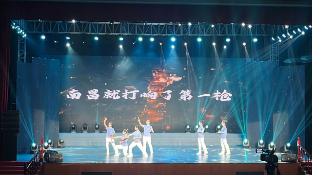 “美丽赣江穿城过,英雄的城市叫南昌”。快板成员以饱满的精神面貌迎接本次演出的到来,现场倾情演绎《建军精神放光芒》,快板的节拍伴着朗朗上口的唱词,向观众介绍了建军精神的由来,生动展现了南昌起义这段红色历史。艺术的魅力吸引了观众的目光,简明的唱词拉近了与观众的距离,推动建军精神深入人心。