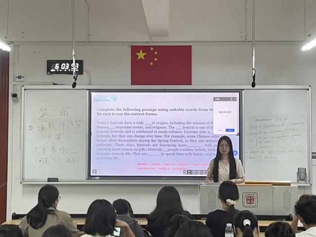 整场比赛紧张而有序,选手们以饱满的精神面貌投入到比赛中,说课内容丰富多彩,教学方法形式多样,教学流程环环相扣,教学风格各异,展现出扎实的英语知识基础和良好的英语专业素养。在说课环节中,选手们合理安排时间,在有限的时间内充分展现出自己的说课思路和特色。每位选手说课展示结束后,评委们根据其表现针对性地提出问题。而选手们也能用清晰、准确的语言回答各个问题,展现出良好的随机应变能力和语言组织能力。