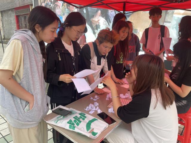 活动现场共划分为8个区域,每个区域都有自己的主题和特色,同学们须在各区域进行打卡获得印章。在“连连看”区域,同学们仿佛踏上了一场环球之旅。各国的标志性建筑和令人垂涎的地道美食在此汇聚。移步至“看图猜电影”区,映入眼帘的是一系列经典电影的海报与剧照。同学们在此留连忘返,通过猜测电影名字,切身感受各国的电影文化,拓宽国际视野。“手写祝福,传递温暖”区,是一片充满温情的角落。同学们纷纷拿起笔,以外语书写下那些触动心灵的名言、书摘与诗句。集章后获得的精美奖品是对同学们积极参与的一份回馈,现场的火热氛围也展现了当代大学生对于外语文化的欣赏与热爱。