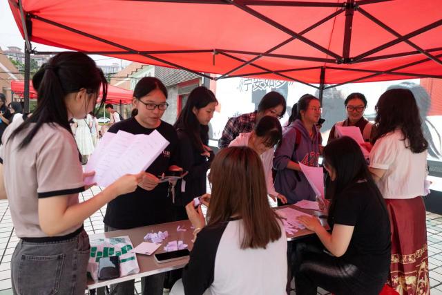 (图为活动海报后方同学们正在参与活动关卡1:手写祝福,传递温暖)
