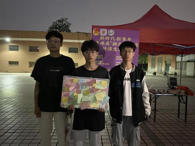 (图为活动后同学们与活动关卡1的留言板进行合影)