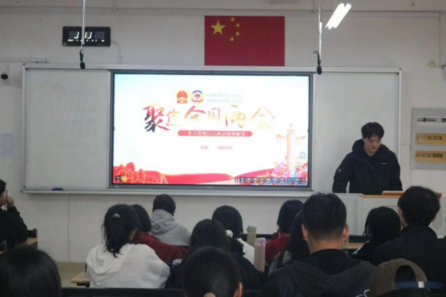 本届大骨班邀请了优秀学生代表同大骨班学员进行交流。中共预备党员刘逸向大骨班学员讲解分析了2024年全国两会。他从两会概述和会议热词入手,对其具体内容进行解读,鼓励同学们积极从两会中学习先进理论知识,把握时代的方向标,谱写时代新华章。