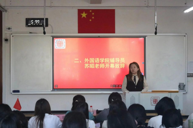 院团委老师苏昭致开幕辞。她指出,大骨班作为长期的培训班,各学员应珍惜此次学习机会,锻炼自己、服务同学,积极参与红色实践,不断增强本领才干。
