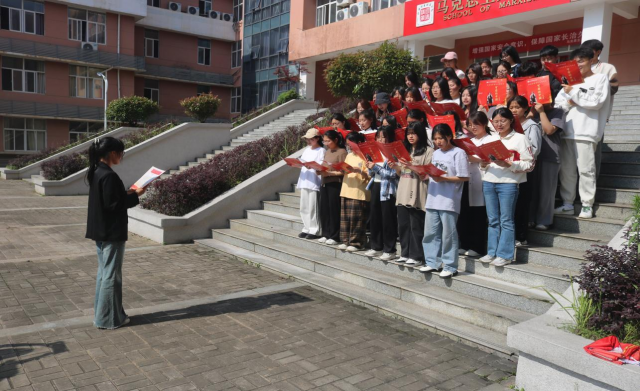 院辅导员皮卫阳向大骨班成员解读习近平新时代中国特色社会主义思想。他指出,当代大学生应当深刻把握“十个明确”、“十四个坚持”等先进思想,不断提高马克思主义理论水平,把理论学习成效转化为生动实践。