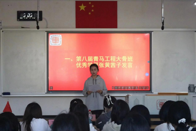 图为第八届大骨班优秀学员张黄茜子进行经验分享
