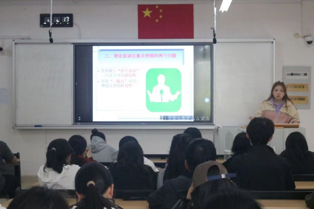 院团委老师苏昭作题为《如何做好理论宣讲》的讲座。她围绕理论宣讲的重要意义、注意问题、提高成效三个方面发言。她强调,同学们在宣讲过程中应牢固树立“四个意识”、把握“三贴近”,坚持正确导向,严守宣讲纪律。