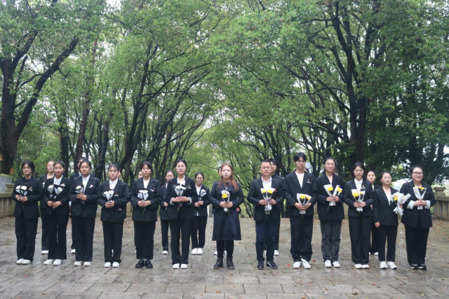 清明时节,春意盎然。4月2日下午,在院团委老师苏昭、辅导员皮卫阳的带领下,大骨班全体成员赴方志敏烈士陵园开展“缅怀先烈志,共筑中华魂”清明祭扫活动。他们肃穆而庄重地将花摆放在纪念碑基座上,一束束花代表着一份份对烈士的敬意和怀念。