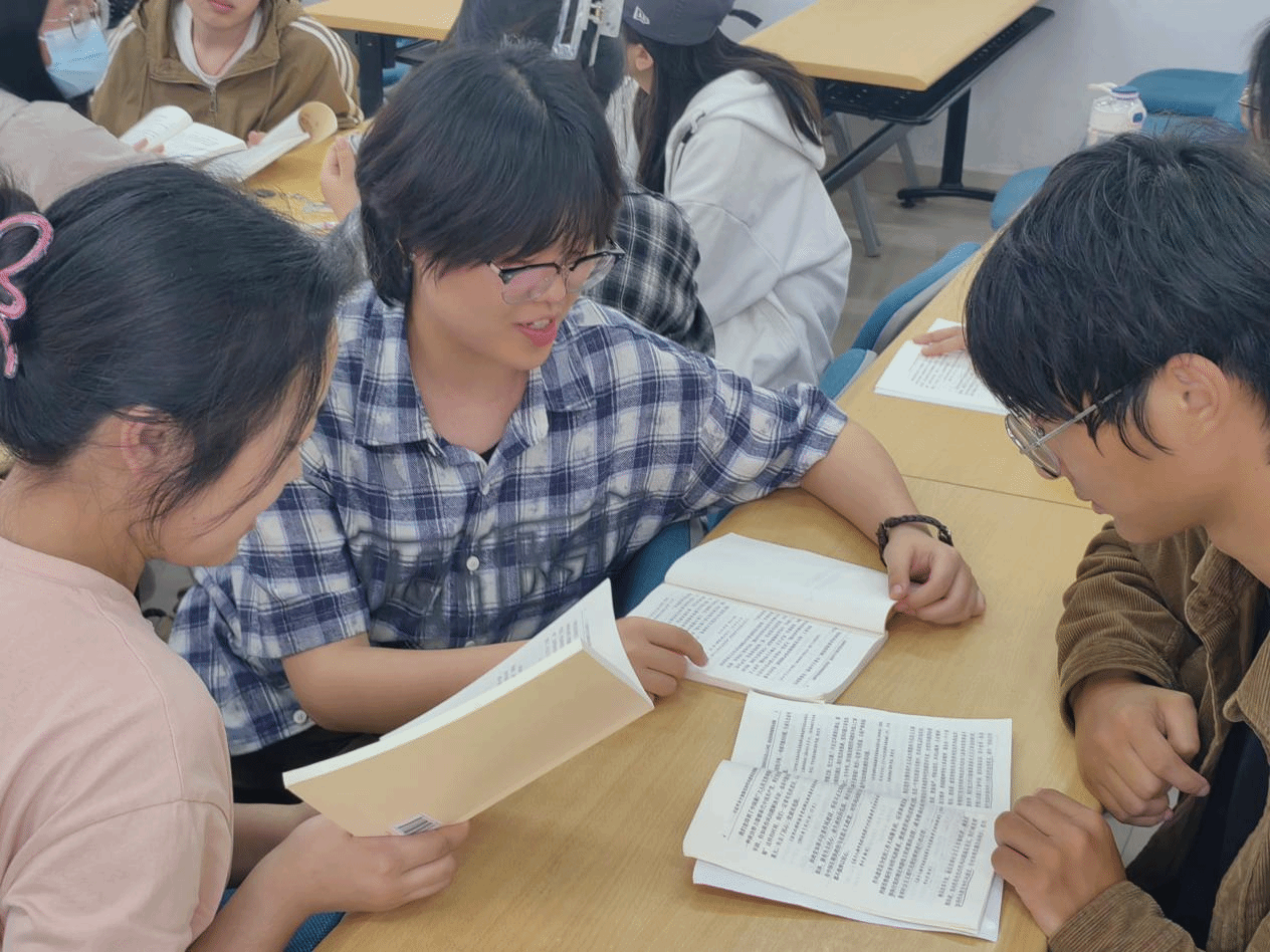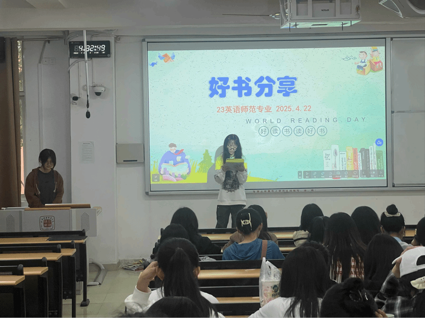 学院英语师范专业学生结合师范专业特点,聚焦中华优秀传统文化,开展“经典咏流传”读书分享活动。在“书香分享·思想碰撞”环节,同学们推荐分享《论语》《孟子》等传统经典,感悟中国古代教育思想;在“经典润心灵,诵读传精神”环节,现场播放《大学》经典诵读片段,感悟““修身齐家治国平天下”中的成才之道。同学们在朗读视听中,仿佛穿越时空,与古圣先贤进行了一场跨越千年的对话,滋润心灵,提升境界。